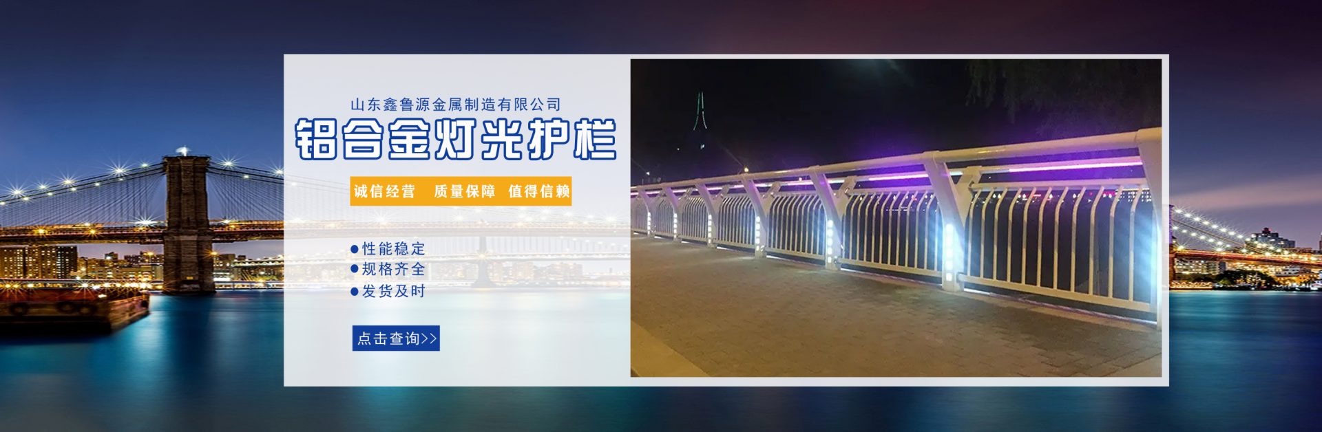 山東鑫魯源金屬制造有限公司主要經營:鋁合金橋梁護欄,鋁合金防撞護欄,鋁合金橋梁防撞護欄,鋁合金燈光護欄,不鋁合金橋梁護欄廠家,環波梁橋梁護欄,環波梁防撞護欄。質量可靠、經濟實用的顯著特點。公司為客戶提供可靠售后保障,堅持“以品質立足、服務求發展”,愿與各界朋友精誠合作、攜手發展!  服務優勢:真誠的服務理念、完善的服務體系。公司專業力量充足;工程案例眾多、從業經驗豐富;公司以可靠質量的產品,合理的價格,完善的售后服務,能夠滿足市場各個企業的需求。  企業精神:執著追求 持續創新執著追求,就是堅持不懈、堅定從容,專注于自己的事業,把能做的事情做好,不斷克服困難、把握機遇,贏得未來。  持續創新,就是生命不息、創新不止,通過持續實施技術創新、管理創新、市場創新,獲取持續的競爭優勢。...